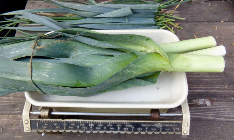 Die soeben beschriebene Erntemenge scheint im ersten Moment übertrieben, doch dem ist nicht so. Vergleichen wir es einmal mit einem klassischen Winterporree, der von der Pflanzung bis zur Ernte kontinuierlich wächst. Unter idealen Bedingungen kann er tatsächlich eine gewaltige Größe und Dicke erreichen.